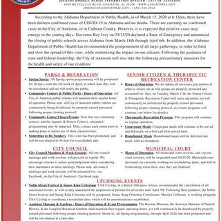 The City of Anniston Press Release (03/15/20)Calhoun County EMAMar 15, 20201 min readUpdated: Mar 17, 2020https://bit.ly/33j5FHI